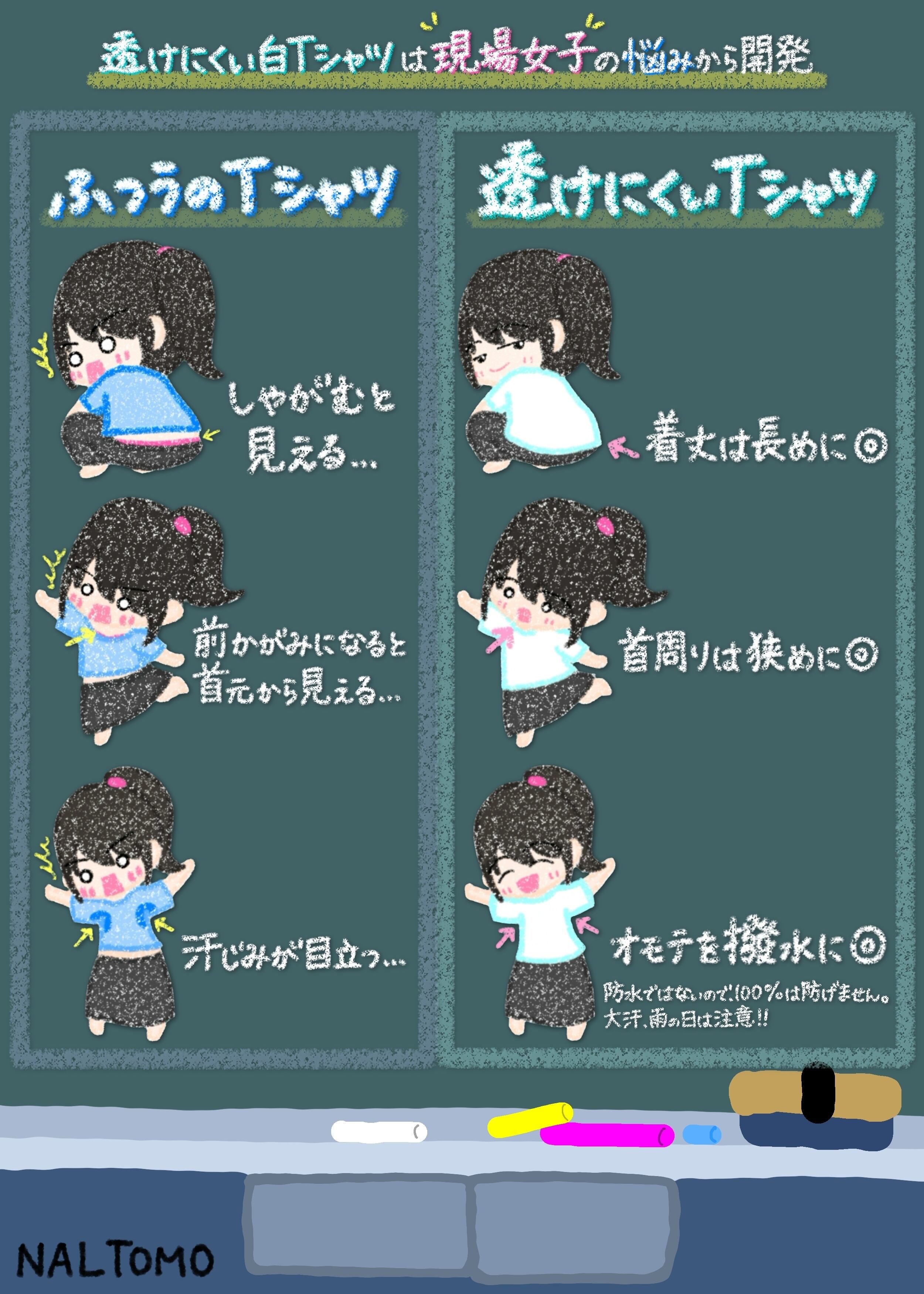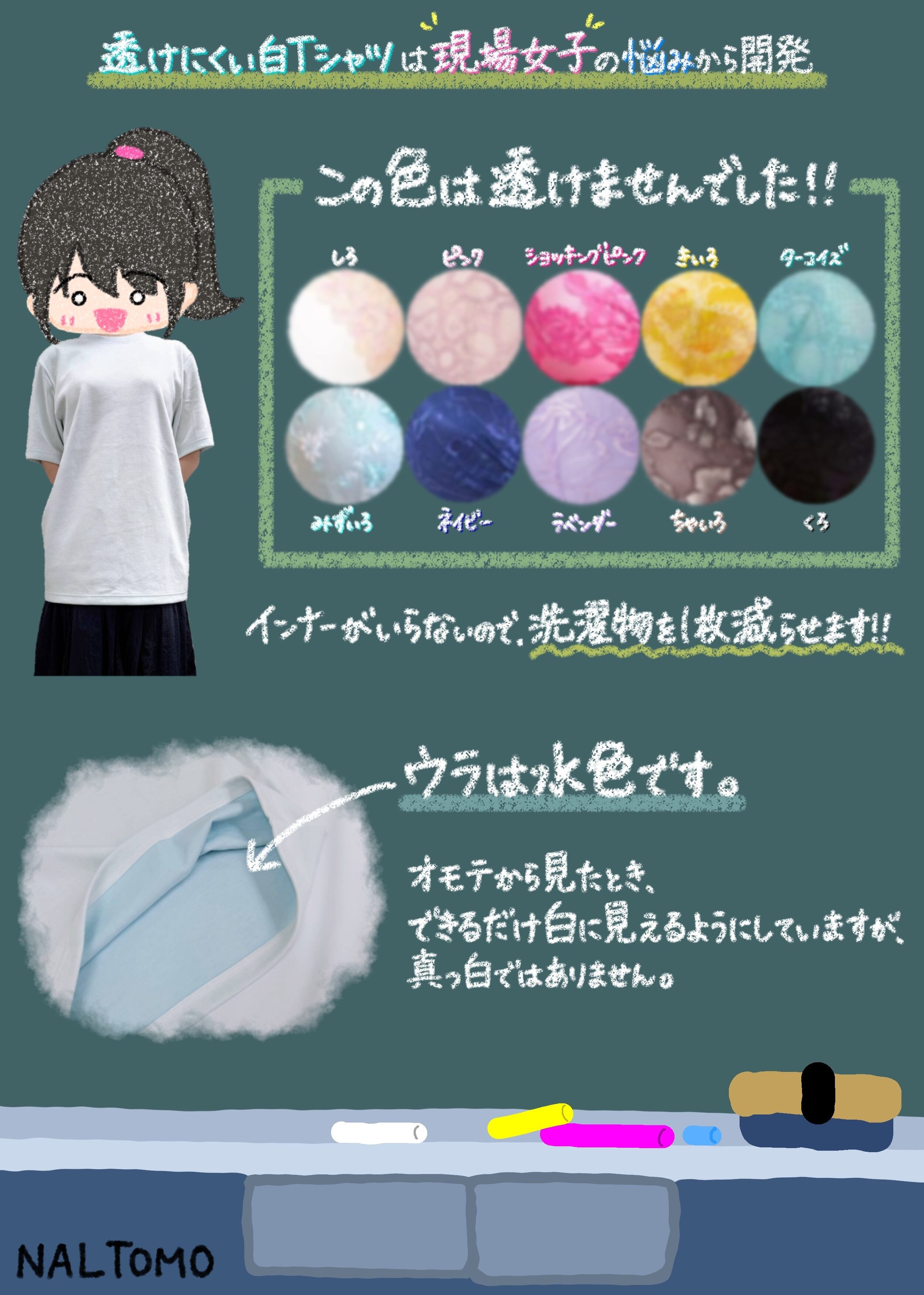 ・水に濡れると含んだ水分の影響で透けますので、雨や大量の汗などにはお気をつけください。