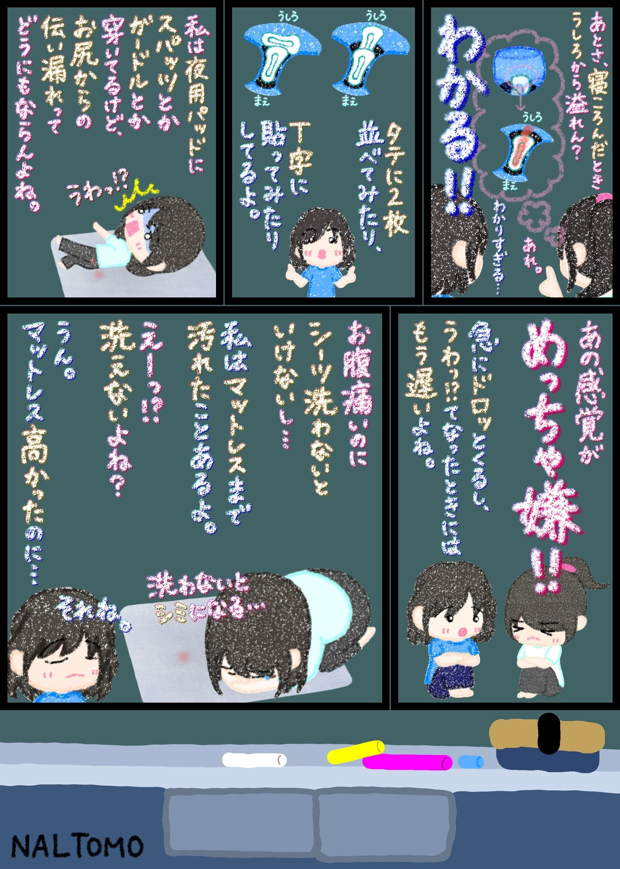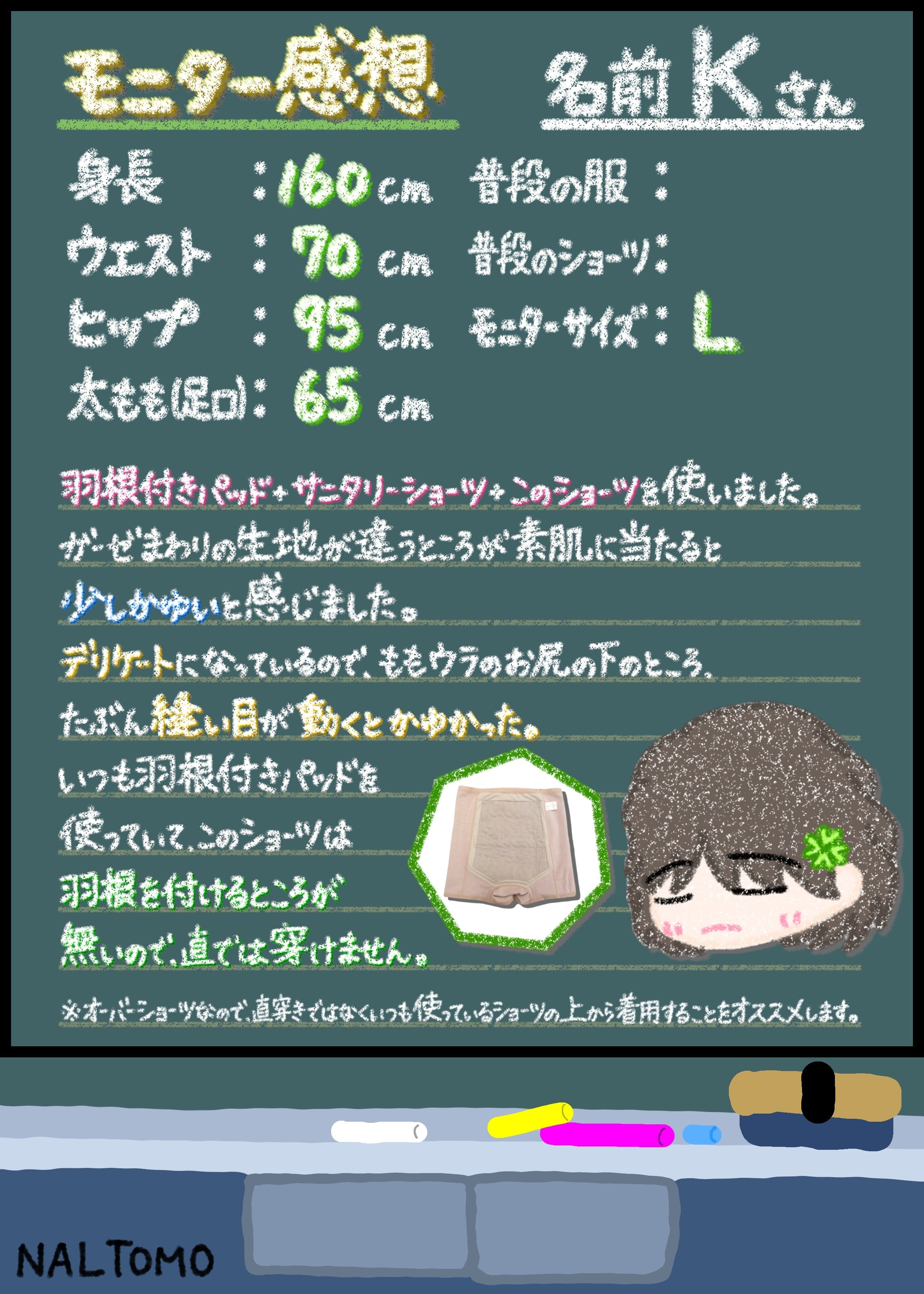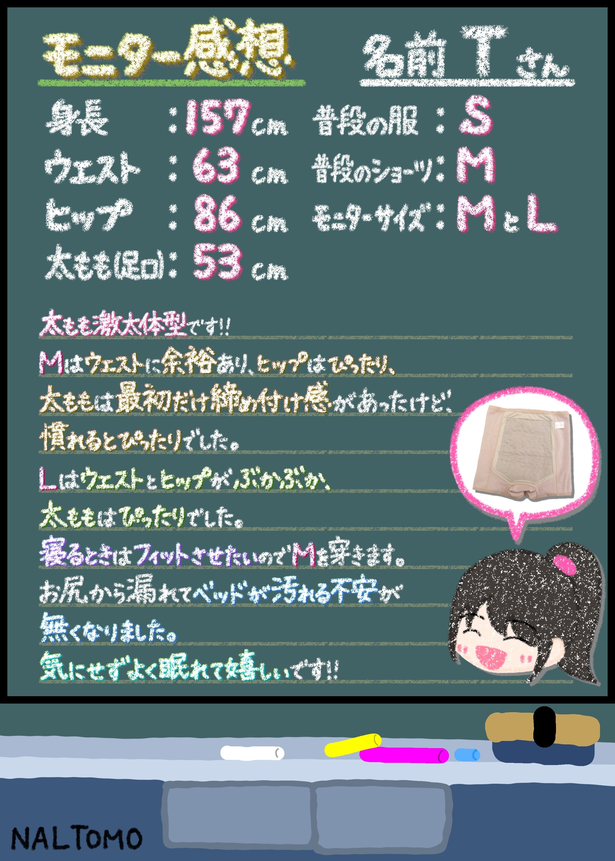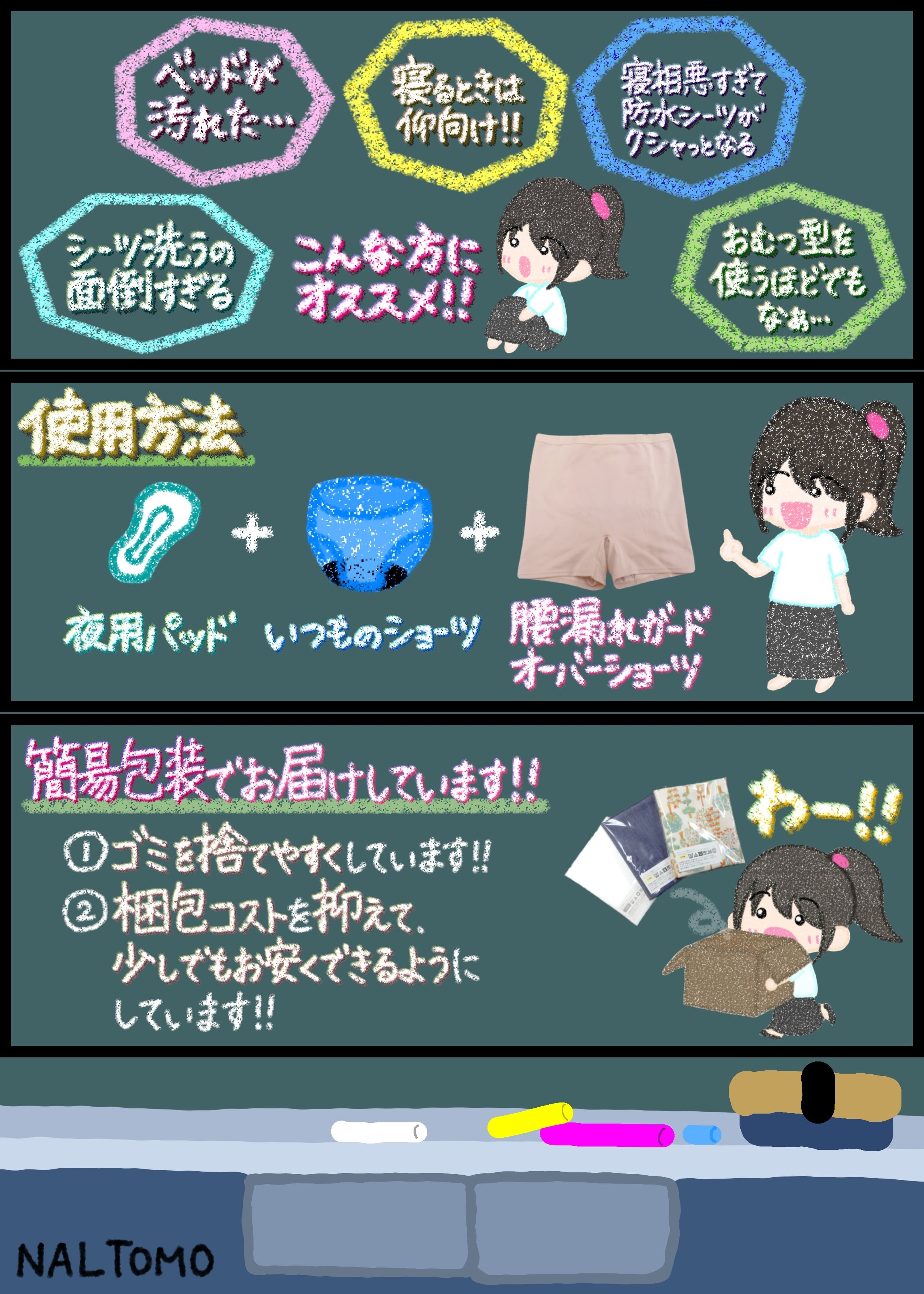 ①吸水パッド、サニタリーショーツなどとの併用を 前提としておりますので、この商品のみで使用し ないでください。