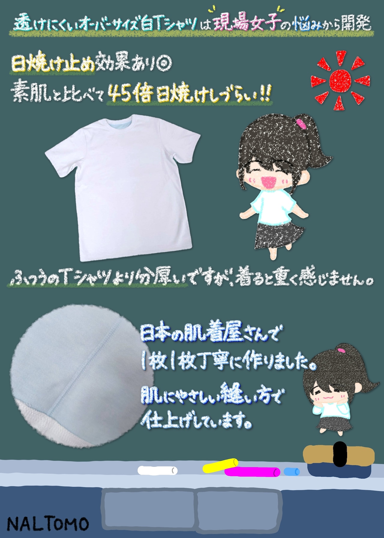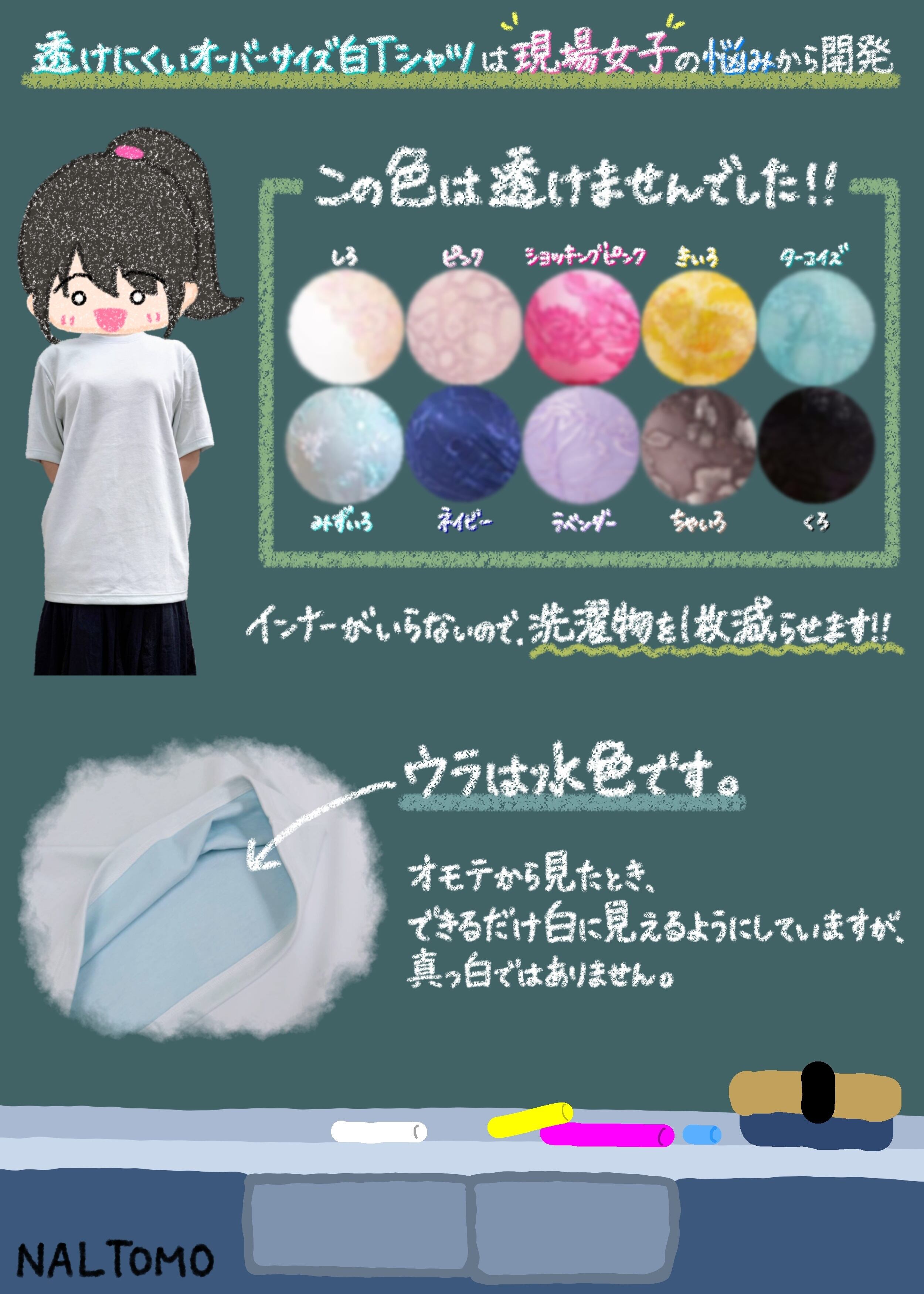 ・水に濡れると含んだ水分の影響で透けますので、雨や大量の汗などにはお気をつけください。